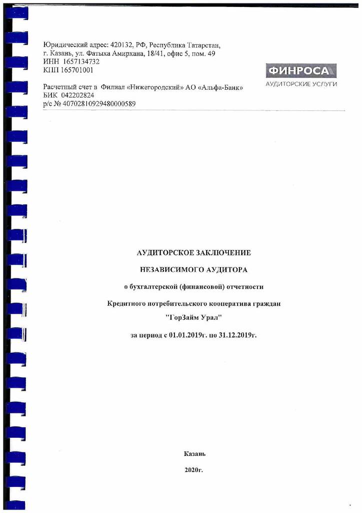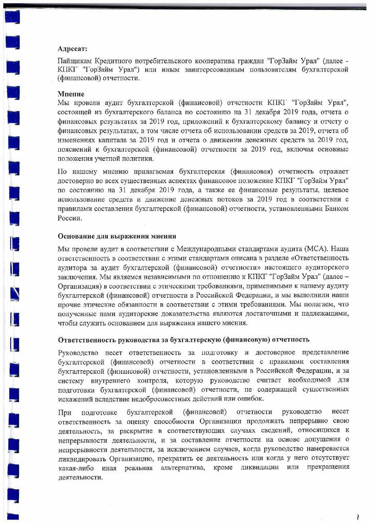 аУДИТОРСКОЕ ЗАКЛЮЧЕНИЕ КПКГ «горЗайм Урал» зА 2019 гОД!