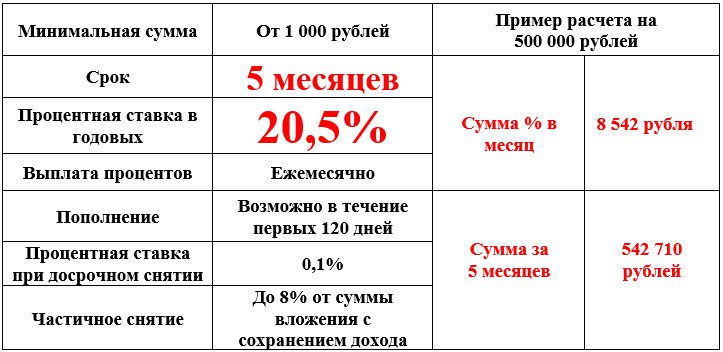 на срок 5 месяцев 20,5% годовых